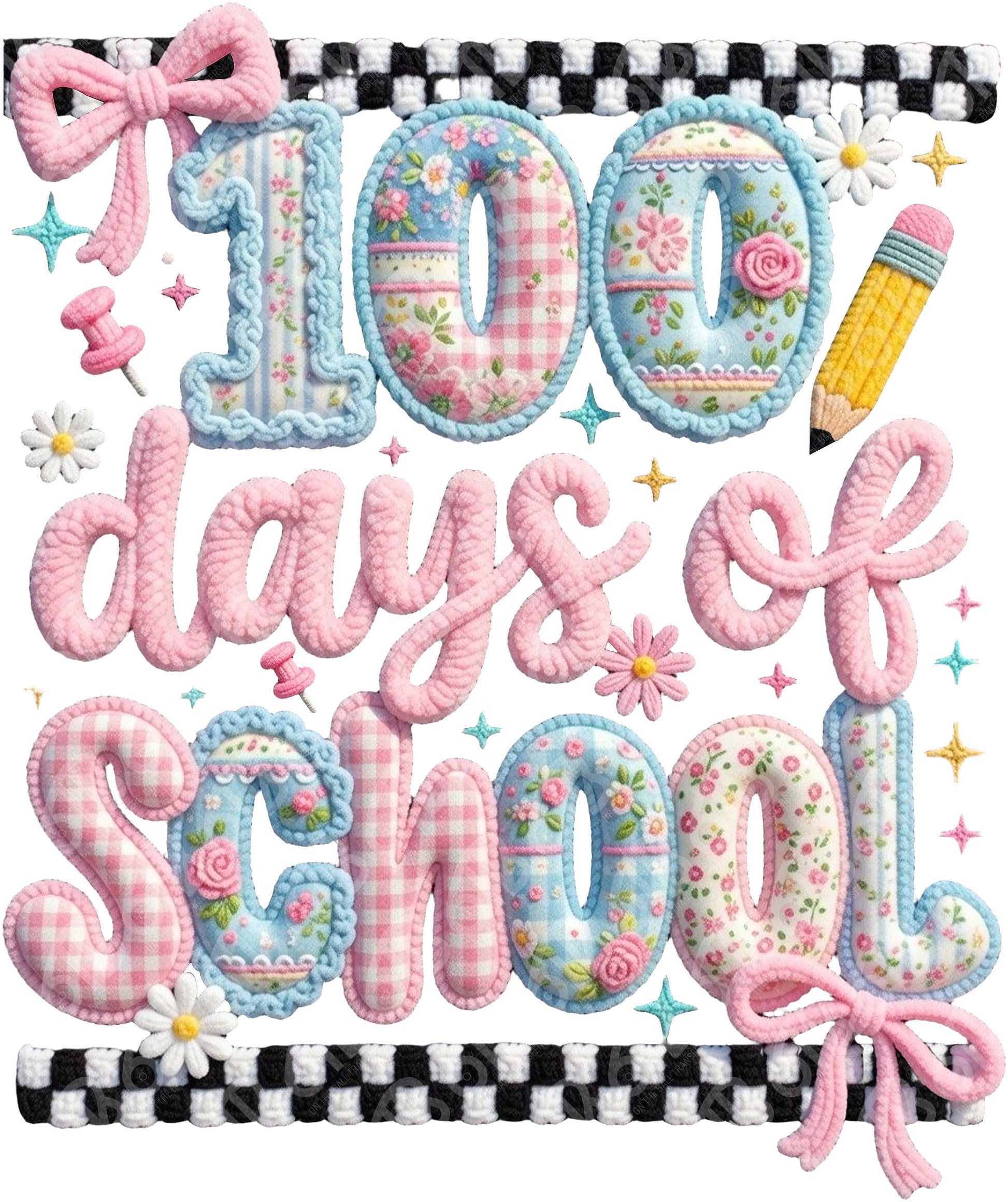 100 Days of School Faux Yarn DTF Transfer
