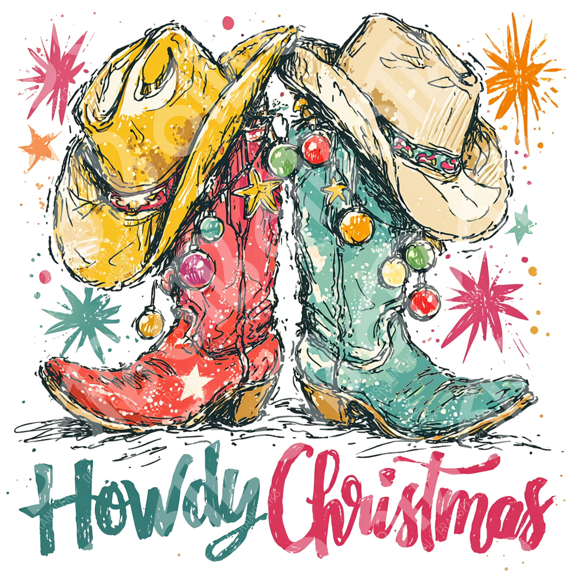 Howdy Christmas Boots DTF Transfer
